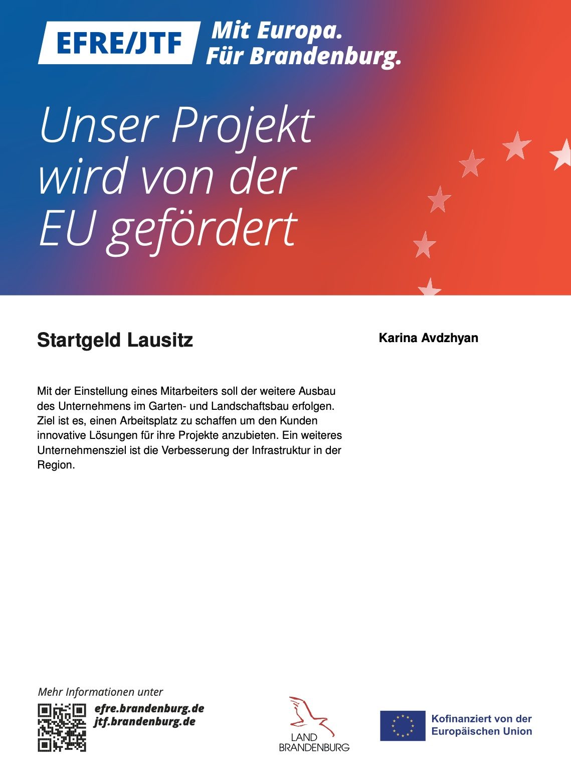 (Startgeld Lausitz) mit Mitteln der Europäischen Union und des Landes Brandenburg gefördert.
